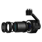 The DJI Zenmuse X7 Camera features a detachable 3-axis gimbal that provides stabilization and enables the camera to move independently of the aircraft. This camera system offers multiple recording options, including 6K video at 17:9 and 16:9 aspect ratios, DCI 4K at 30 fps, and UHD 4K at 60 fps in Cinema-DNG format; it also supports DCI and UHD 4K in ProRes and H.265/H.264. In addition to video, the Zenmuse X7 shoots 24MP still images, which can be captured in various photo modes, including individual or bursts. The Zenmuse X7 supports both microSD and DJI CINESSD cards.